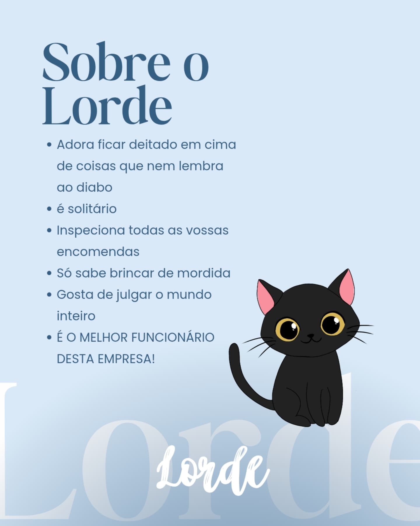 O Lorde é o nosso funcionário do mês e controlo de qualidade, uma vez que ele inspecciona tudo e mais alguma coisa :3